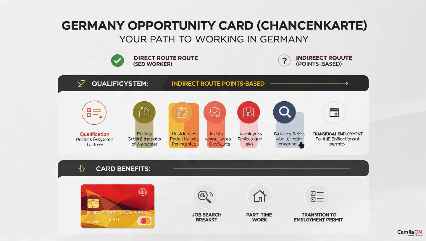 The Germany Opportunity Card officially called the Chancenkarte was introduced in November 2023 under Germany's Skilled Immigration Act (Fachkräfteeinwanderungsgesetz) and has been fully operational since November 2024. It is a job-seeker visa that allows non-EU nationals to stay in Germany for 1 year and search for employment without a prior job offer.